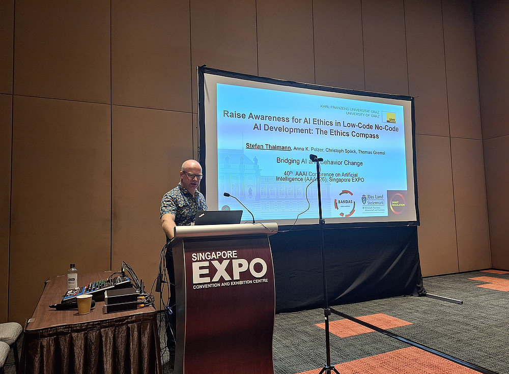 Stefan Thalman from the BANDAS-Center presented a paper at the 40th Annual AAAI Conference on Artificial Intelligence in Singapore. The paper, titled “Raise Awareness for AI Ethics in Low-Code No-code AI Development: The Ethics Compass,” addresses the growing need for ethical guidance in AI development. The paper was co-authored by Anna Polzer, Christoph Spöck, and Thomas Gremsl.